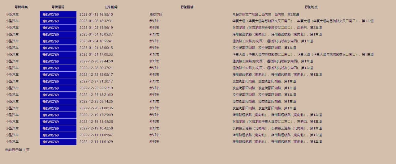 车辆行驶轨迹查询